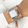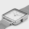 Το τετράγωνο γυναικείο ρολόι La Tétragone διαθέτει θήκη 28.5 mm σε ασημί χρώμα, λευκό καντράν και λουράκι από ανοξείδωτο ατσάλι ασημί χρώματος πλάτους 16 mm.Αλλάξτε εύκολα το ύφος του ρολογιού σας με οποιοδήποτε λουράκι CLUSE 16 mm. Μπορείτε να προσαρμόσετε μόνοι σας το λουράκι.